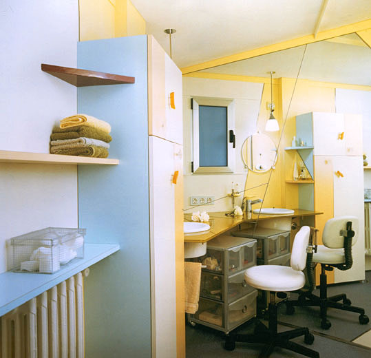 Tito Muñoz y Yero me dieron la oportunidad de rehabilitar dos baños singulares y únicos, como son ellos . La altura de los lavabos es superior e inferior a la medida estándar. Creo que hay funciones en nuestro proceso de limpieza corporal , que son mas propias para hacerlas sentados. Por ejemplo , esa costumbre perdida de utilizar un tocador en el dormitorio tenía una utilidad , que es mas lógica e higiénica si se practica en el baño.