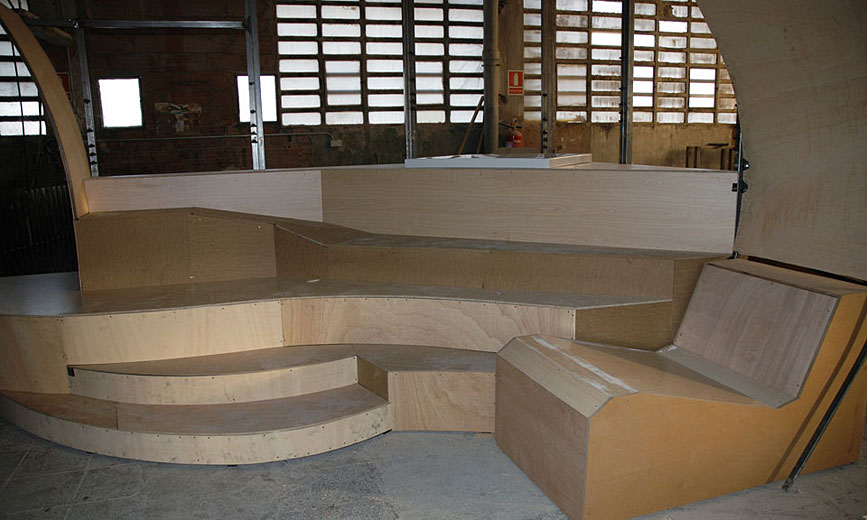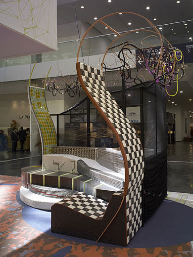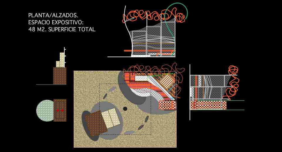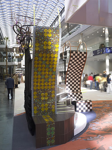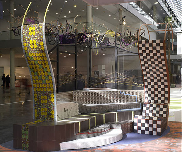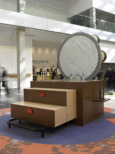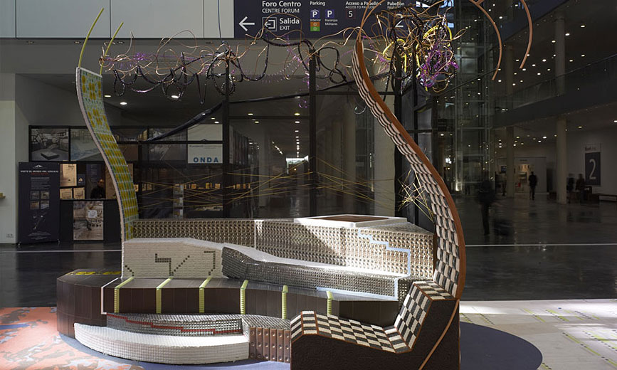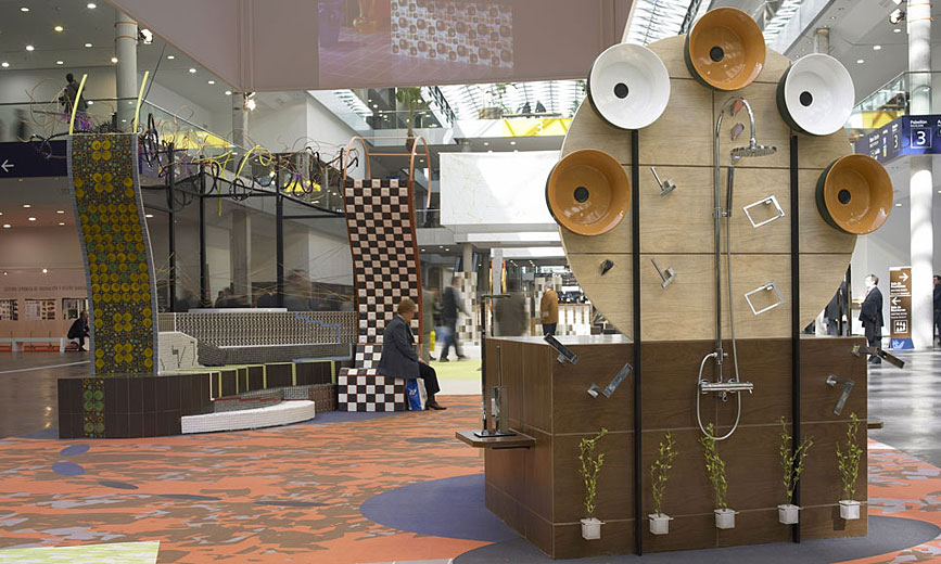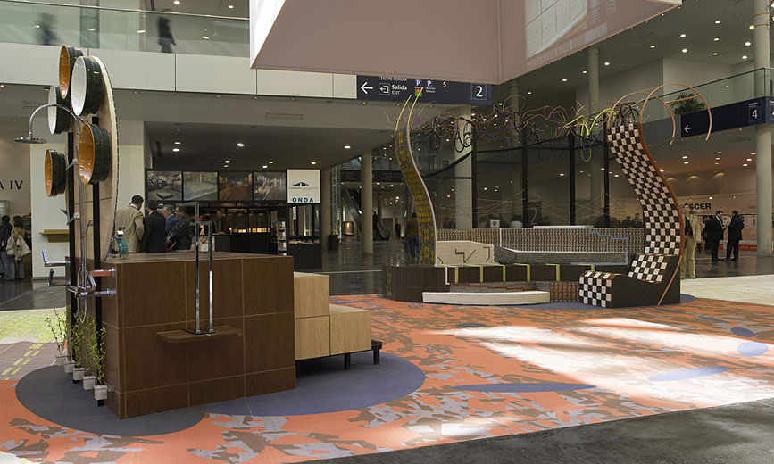 Realización de obra y diseño de mobiliario para una exposición de materiales cerámicos.
