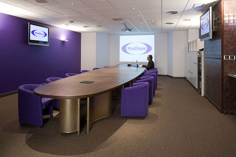 Realización de obra completa de construcción de oficina para la empresa Mindshare dedicada a la gestión de compra de medios para publicidad, en Madrid.