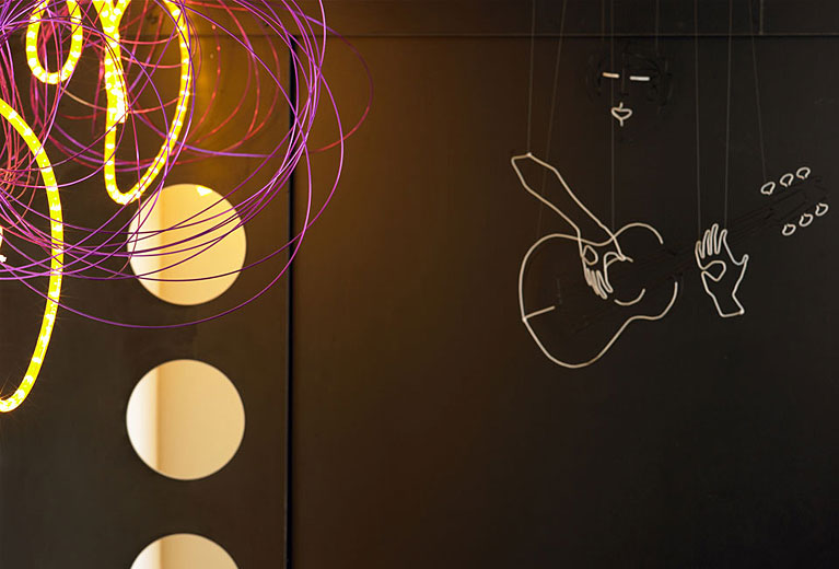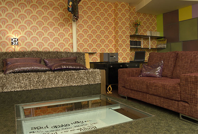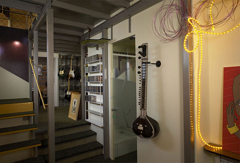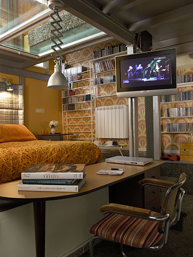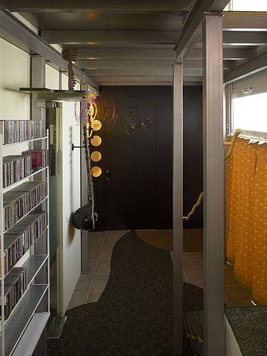 Es una oficina-estudio un espacio en el que trabaja un músico, y dado que estos profesionales no tienen horario ni reglas para ejercer su profesión queda patente la fusión entre todas las utilizaciones del espacio. Es un ejemplo de qué se puede hacer en un espacio con pocos m2., con poco dinero y resolver las necesidades de las personas que viven y trabajan en un mismo lugar. Queda patente que esta necesidad es cada vez mas frecuente.