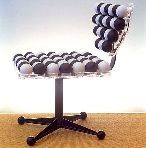 Lola Lago cuenta, con esta sugerencia, que no debemos pensar que las cosas sólo pueden ser de una manera. El asiento, creado con pelotas antiestrés, demuestra que las ideas preconcebidas nos limitan.